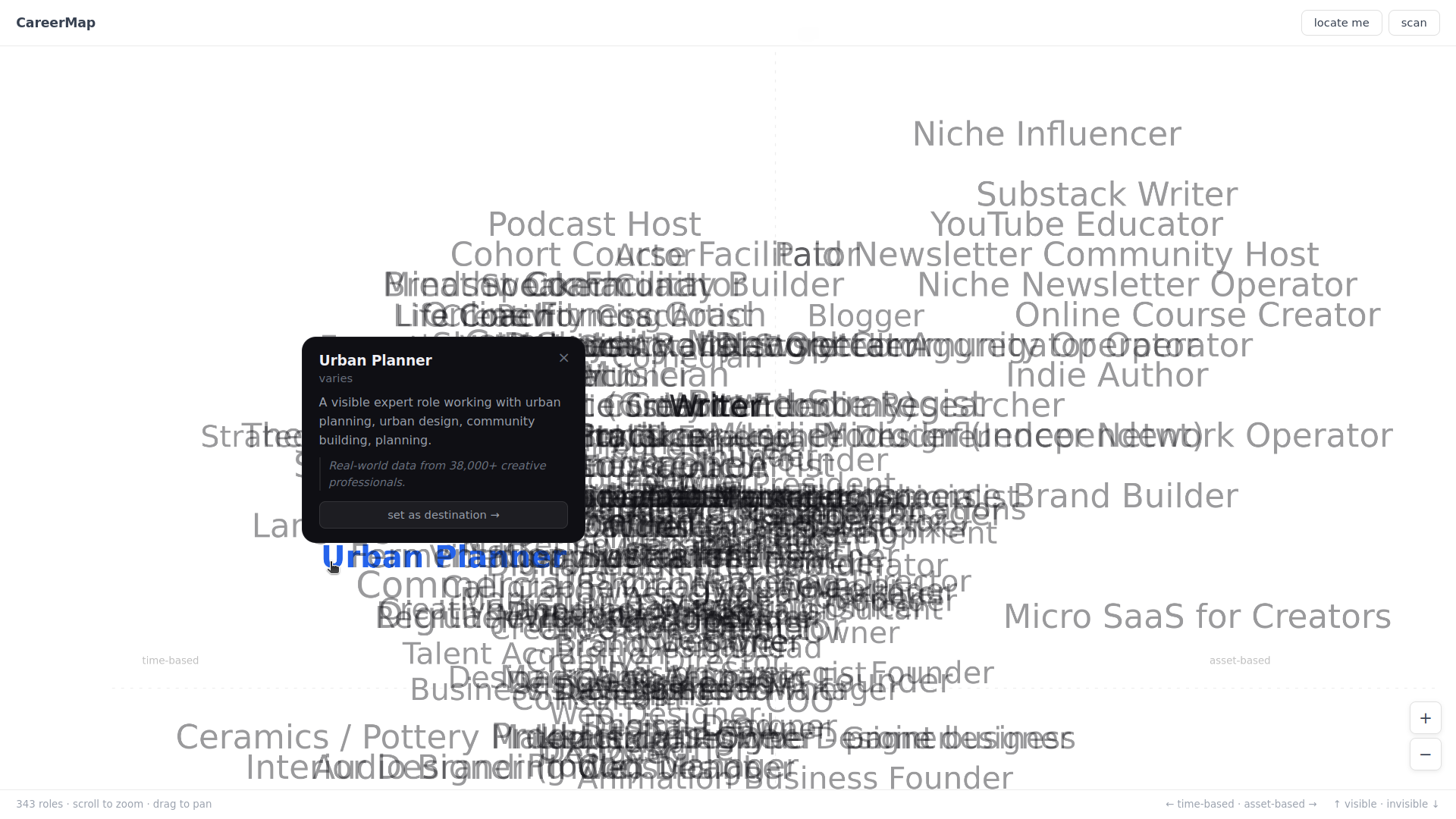 It is not a job board. Click a role, see what it actually involves, find what sits adjacent to it. Or let the system auto-scan to give you a tour of all thatâs out there. It starts with the indie and micro-economy space because that is where the gap felt most urgent and least served.